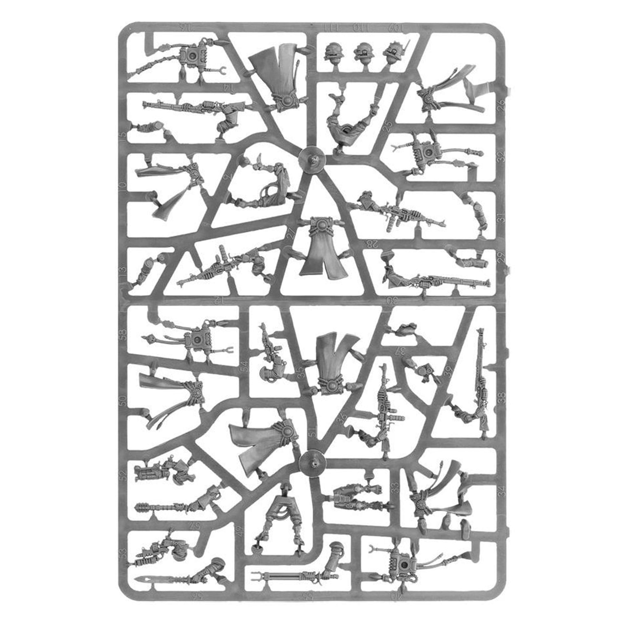 Adeptus Mechanicus Skitarii to elitarna drużyna cybernetycznych żołnierzy, gotowa do walki w imię Technologicznego Imperium. Zestaw pozwala zbudować 10 modeli Skitarii Rangers lub Vanguard z zaawansowanym uzbrojeniem i cybernetycznymi ulepszeniami, idealnych do gier bitewnych Warhammer 40,000 lub kolekcjonerskiej ekspozycji.