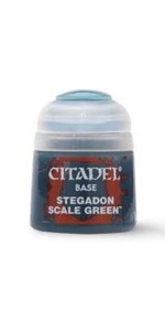 Citadel Base: Stegadon Scale Green 12 ml to ciemny, niebiesko-zielony odcień idealny jako baza pod schematy z głębokimi, chłodnymi tonami. Farba zapewnia wysokie krycie i doskonale sprawdza się na zbrojach, łuskach oraz elementach naturalnych lub magicznych.