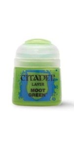 Citadel Layer: Moot Green 12 ml to bardzo jasny, jaskrawy odcień zieleni idealny do mocnych rozjaśnień i energetycznych akcentów. Farba nakłada się cienko i precyzyjnie, podkreślając detale modeli i nadając im świetlisty, wyrazisty charakter.