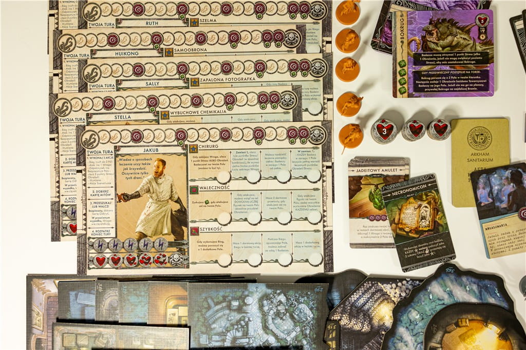 - 45 szczegółowych figurek (w tym badacze, potwory i kultystów),