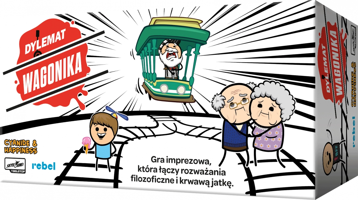 Dylemat wagonika to imprezowa gra karciana dla dorosłych, pełna czarnego humoru i trudnych wyborów. Podejmuj kontrowersyjne decyzje i przekonuj innych do swojego punktu widzenia.