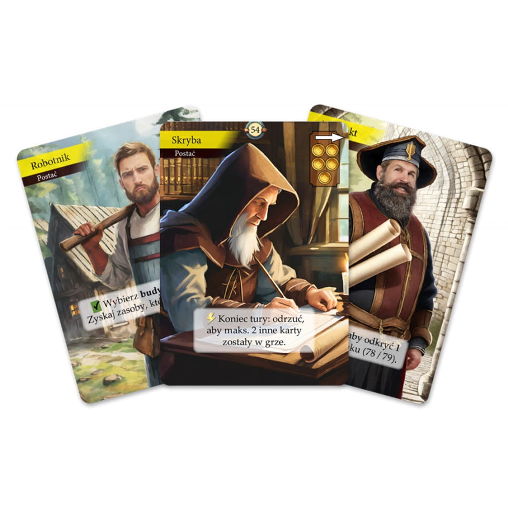 W tej grze solo stajesz się władcą feudalnego królestwa, który zaczyna od skromnych początków, by budować potęgę przez eksplorację, doświadczenie oraz mądre zarządzanie zasobami. Rozgrywka składa się z kampanii trwającej wiele godzin (360-480 minut), podczas której odkrywasz nowe karty, poznajesz ich możliwości, ulepszasz je lub niszczysz — wszystko po to, aby Twoje królestwo było silniejsze i bardziej zróżnicowane.