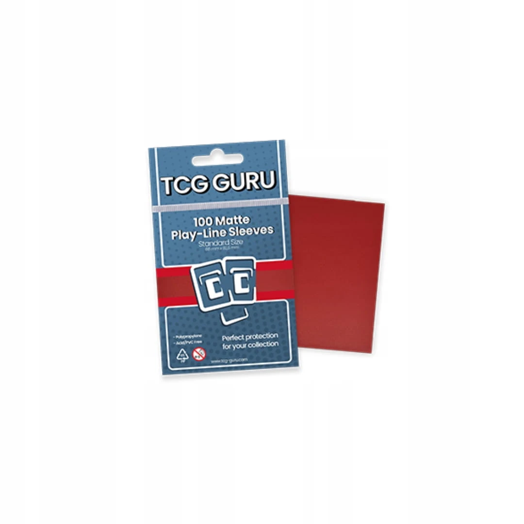 TCG GURU Red Matte 100 to zestaw 100 czerwonych koszulek na karty z matowym wykończeniem, zapewniających ochronę przed zarysowaniami i wygodne tasowanie. Idealne do gier TCG i codziennego użytkowania.