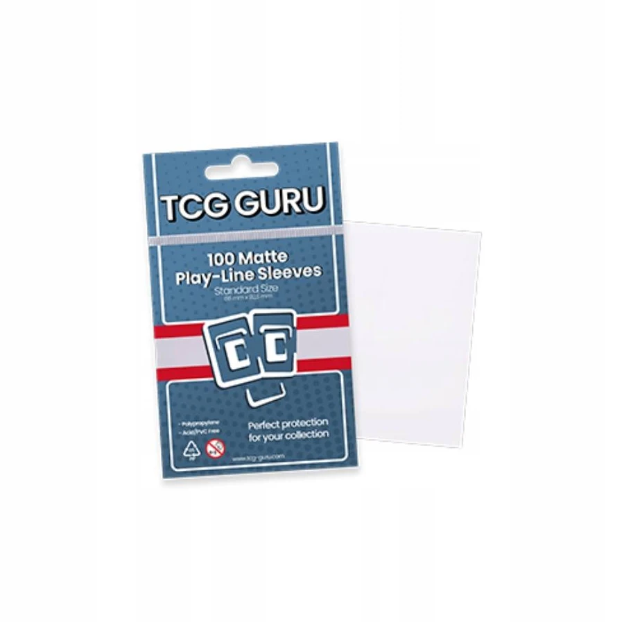 TCG Guru Play Line Sleeves Standard Size Matte Clear to zestaw 100 koszulek ochronnych na karty w standardowym rozmiarze. Przezroczysty, matowy front zapewnia dobrą widoczność kart i komfort gry, jednocześnie chroniąc je przed zarysowaniami, zabrudzeniami i zużyciem. Idealne do codziennego grania i turniejów.
