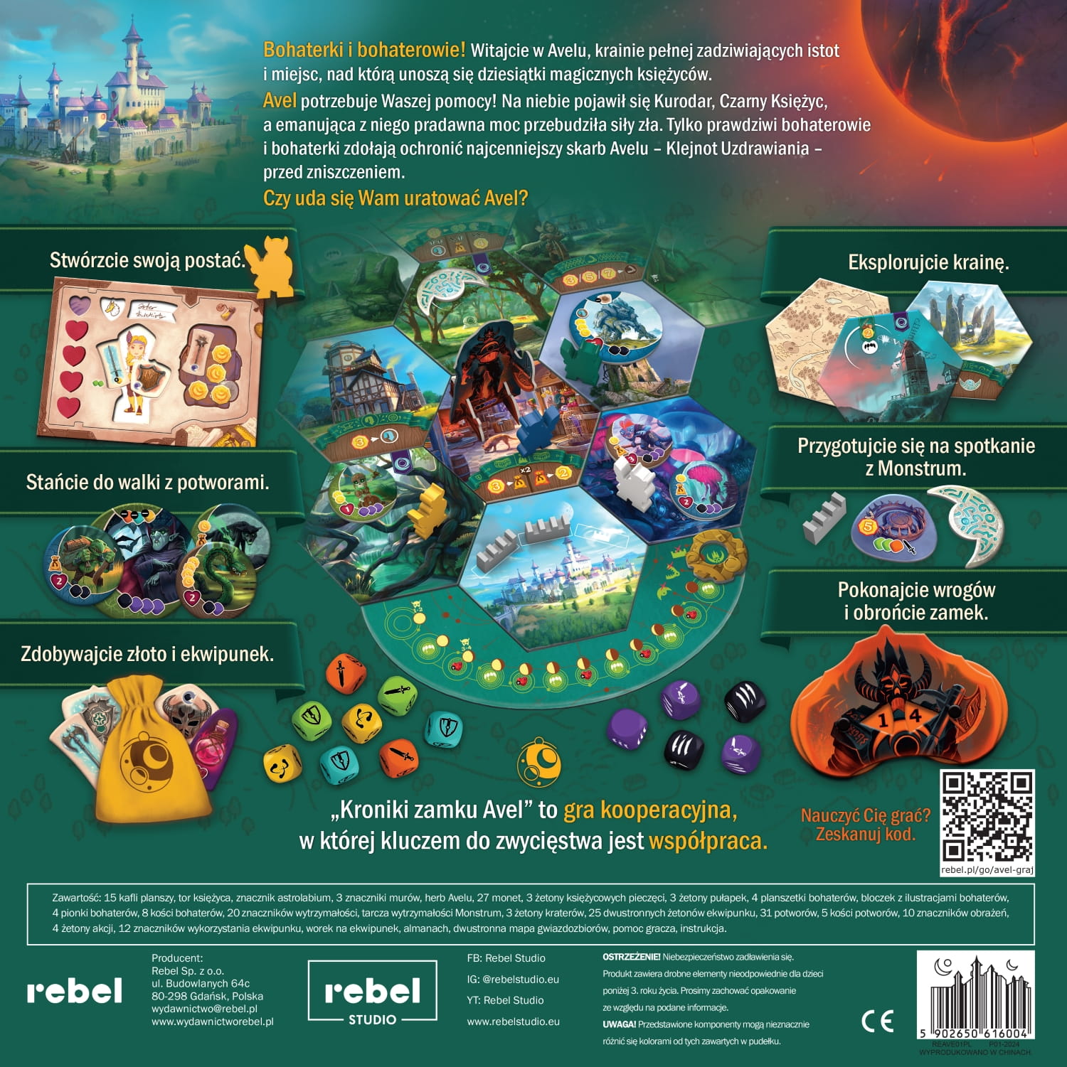 „Kroniki zamku Avel” to pełna przygód, kooperacyjna gra planszowa, w której gracze wspólnie bronią magicznego królestwa przed nadciągającymi potworami. Twórz własnego bohatera, zdobywaj ekwipunek i odkrywaj tajemnice świata Avelu, zanim mrok pochłonie zamek. Idealna pozycja dla rodzin i młodszych graczy — piękna, emocjonująca i zaskakująco strategiczna.
