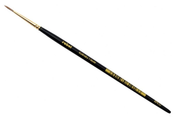 Rebel: Pędzel Kolinsky naturalny – Layer – 1 to precyzyjny pędzel z naturalnego włosia Kolinsky, przeznaczony do detali i pracy warstwowej. Zapewnia doskonałą kontrolę farby, elastyczność oraz ostry szpic, dzięki czemu świetnie sprawdza się przy farbach akrylowych i speedpaint.