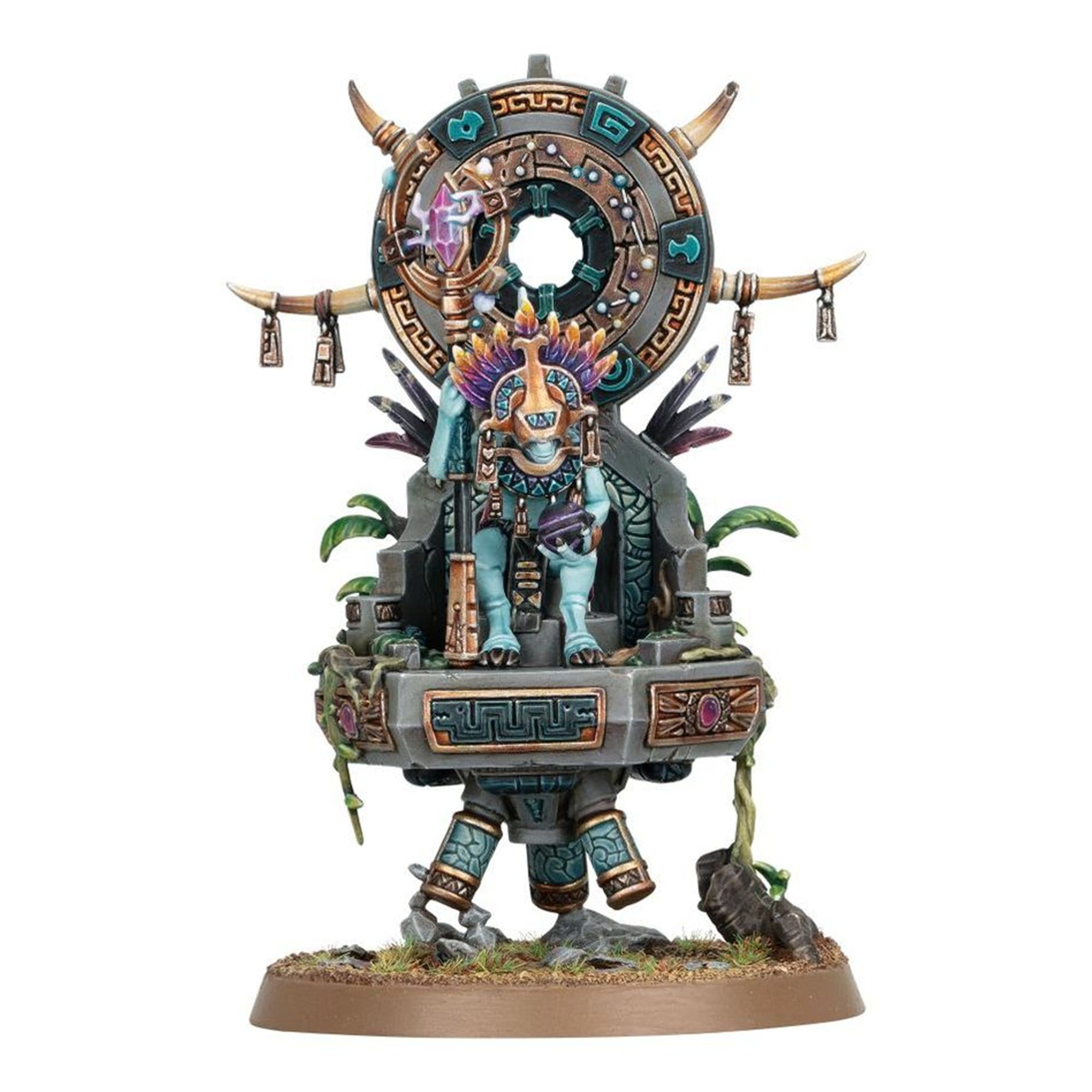 Skink Starseer to elitarny mistyk Seraphonu, mistrz astrologii i pradawnej magii. Jako czarownik poruszający się na unoszącym się palankinie, wspiera sojuszników potężnymi zaklęciami i manipulacją energii gwiazd. Model jest bogaty w detale — od rytualnych symboli po ozdobne elementy platformy.
