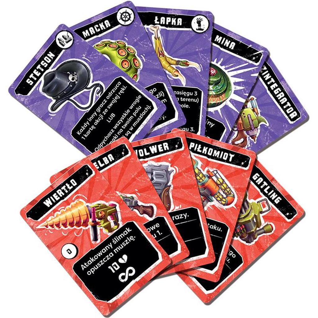 Rozgrywka toczy się na modularnych wyspach, które z czasem… kruszą się i toną w morzu. Każdy nowy poziom może przynieść niespodzianki – od dodatkowego ekwipunku, przez pułapki, aż po beczki gotowe wybuchnąć w najmniej oczekiwanym momencie. Proste zasady opierają się na planowaniu akcji i odpowiednim wyborze ślimaków z oddziału – a szybka, pełna wybuchów i interakcji rozgrywka sprawia, że Ślimaki nigdy się nie nudzą. To połączenie humoru, strategii i totalnego chaosu, które gwarantuje świetną zabawę przy każdym posiedzeniu!