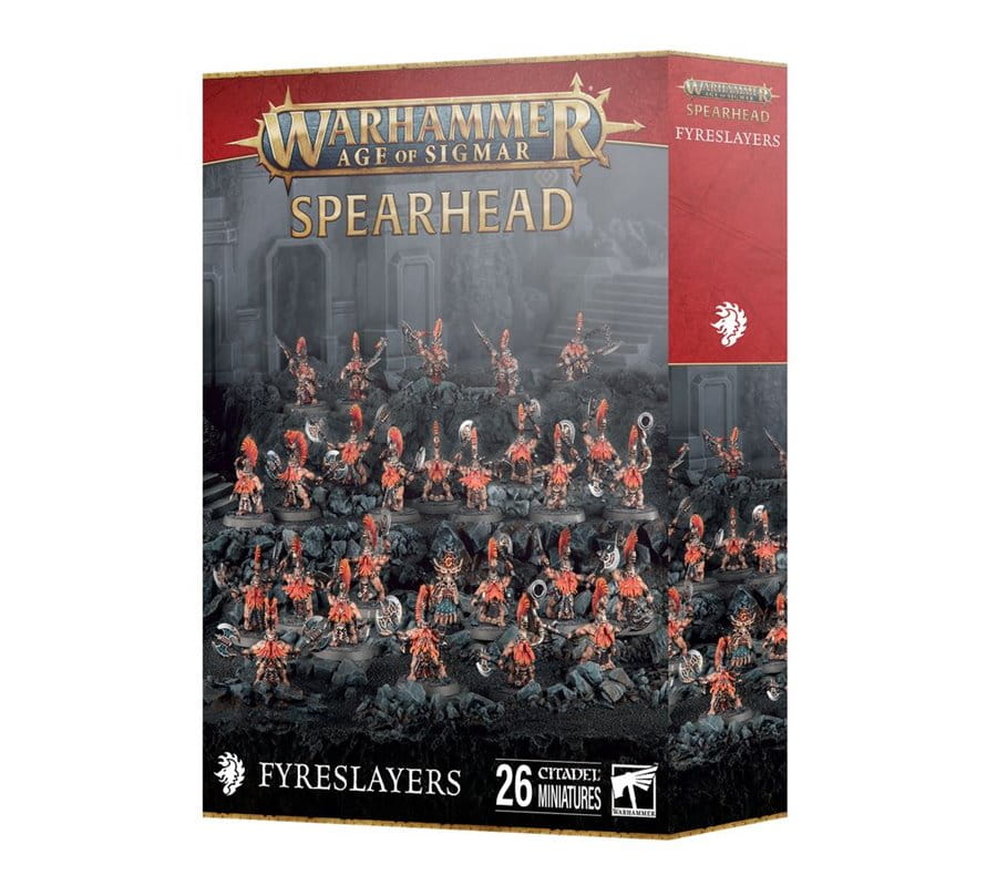 Spearhead: Fyreslayers to idealny zestaw dla graczy, którzy chcą dodać do swoich armii kompaktowy, lecz niezwykle śmiercionośny oddział wojowników ognia. Zdominuj pole bitwy mocą runicznej magii i nieokiełznanej furii krasnoludzkich toporów.