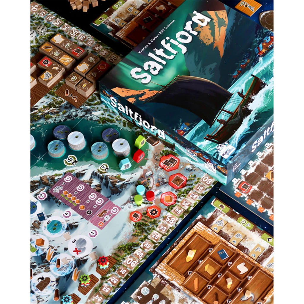 Saltfjord to eurogra ekonomiczna osadzona w XIX-wiecznej Norwegii, w której rozwijasz rybacką osadę, zarządzasz zasobami i planujesz połów, handel oraz technologiczny rozwój. Gra łączy draft kości, budowanie silnika i taktyczne decyzje, oferując dynamiczną rozgrywkę dla 1–4 osób.