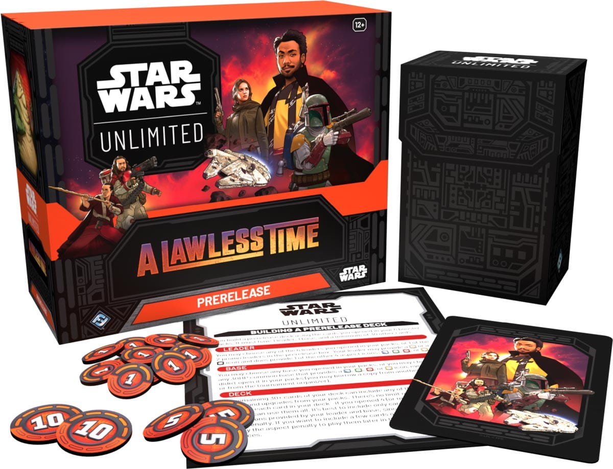 Star Wars: Unlimited – A Lawless Time Prerelease Box to specjalny zestaw przygotowany z myślą o wydarzeniach przedpremierowych. W opakowaniu znajduje się 8 indywidualnych pudełek prerelease, a każde z nich zawiera 6 boosterów z dodatku A Lawless Time oraz komplet żetonów i materiałów potrzebnych do rozpoczęcia gry.
