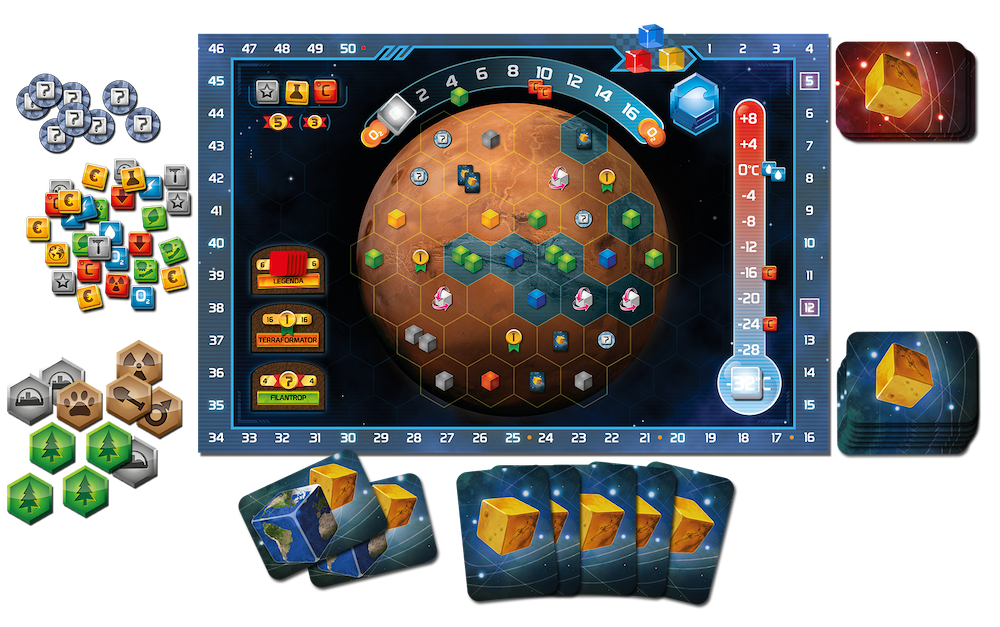 W grze wcielasz się w jedną z megakorporacji, których celem jest przekształcenie powierzchni Marsa w planetę przyjazną życiu. Każda tura to wybór projektów, pozyskiwanie zasobów i rozwijanie infrastruktury – tym razem reprezentowanej przez kości symbolizujące energię, tytan, roślinność, ciepło i inne surowce.