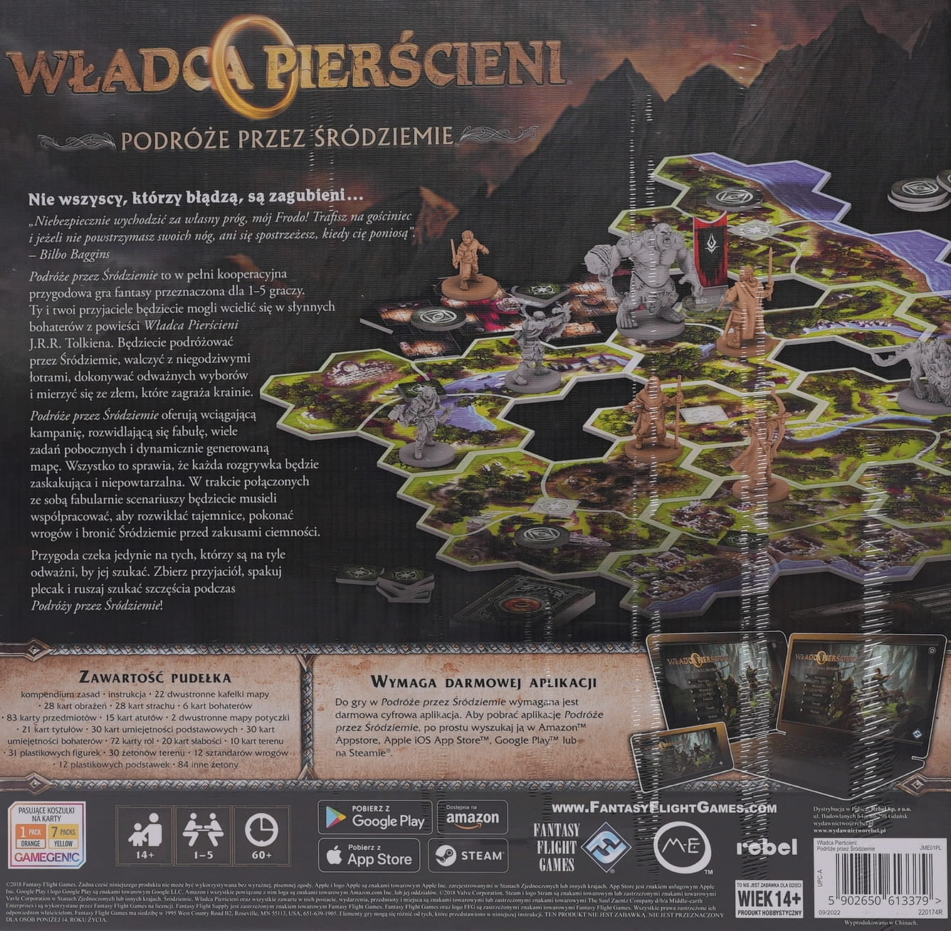Jeśli marzyło Ci się kiedyś, żeby z Frodem, Aragornem albo Gimlim ruszyć na wyprawę pełną orków, przygód i niebezpieczeństw – Władca Pierścieni: Podróże przez Śródziemie spełni te marzenia bez wychodzenia z domu. To kooperacyjna gra planszowa z aplikacją, w której wcielasz się w jednego z bohaterów Drużyny i wspólnie z innymi graczami przemierzasz krainy Śródziemia.